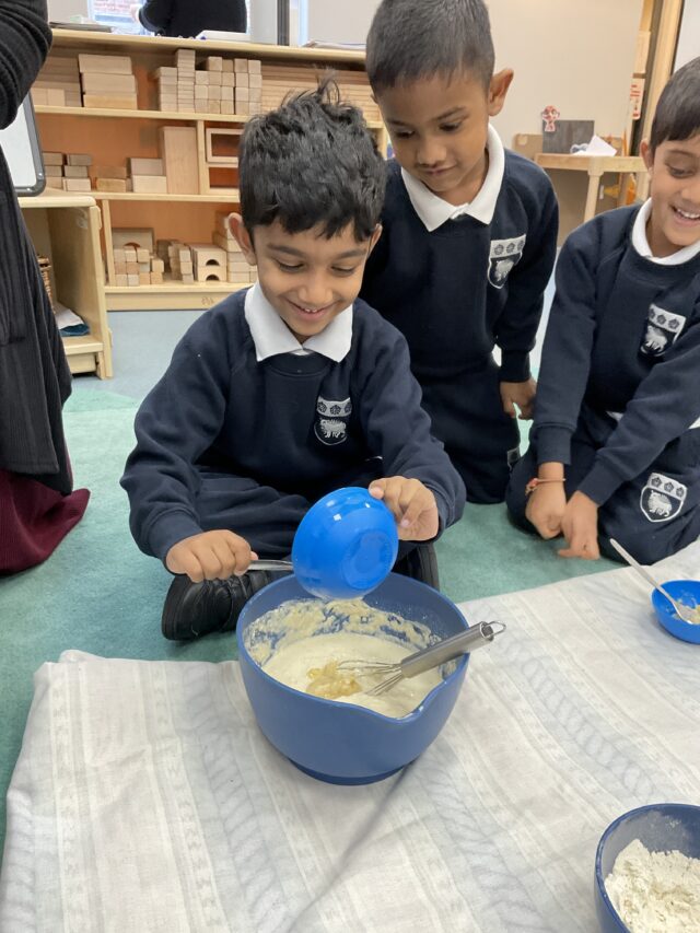 The Reception boys have been busy mixing, stirring, splashing and exploring both indoors and outdoors. In the classroom, they became little chefs as they mixed ingredients to make delicious banana pancakes, and little artists as they blended paints to discover new shades and colours.