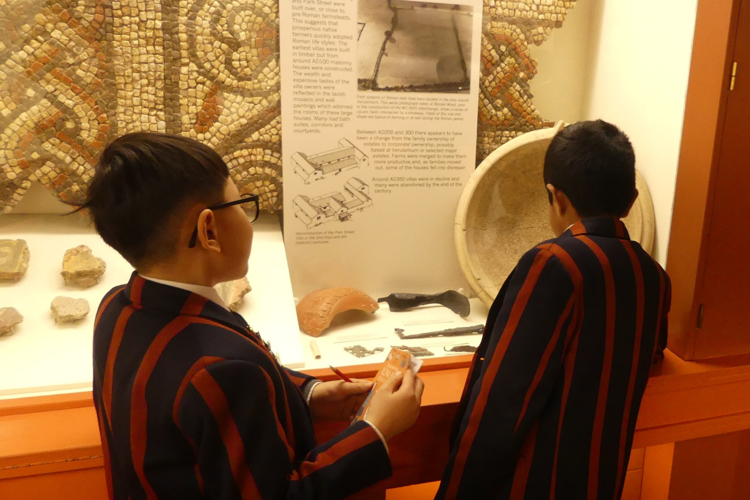 Last Friday, Year 3 took a trip to the past when they visited the Verulamium Museum in St. Albans. The museum is built on the site of one of the largest Roman cities in Britain and is filled with ancient treasures and some of the finest mosaics outside of the Mediterranean. The boys enjoyed a workshop led by the curators of the museum, and learnt about the daily lives of Roman citizens, looking and handling artefacts. They even had the chance to dress up in Roman attire! After the workshop, Year 3 investigated a wonderful example of a preserved hypocaust complete with its mosaic floor. A real highlight of the day was when we went to see a current excavation dig up close and learnt more about the history hidden beneath St Michael’s Street. We all agreed that it was a wonderful trip!